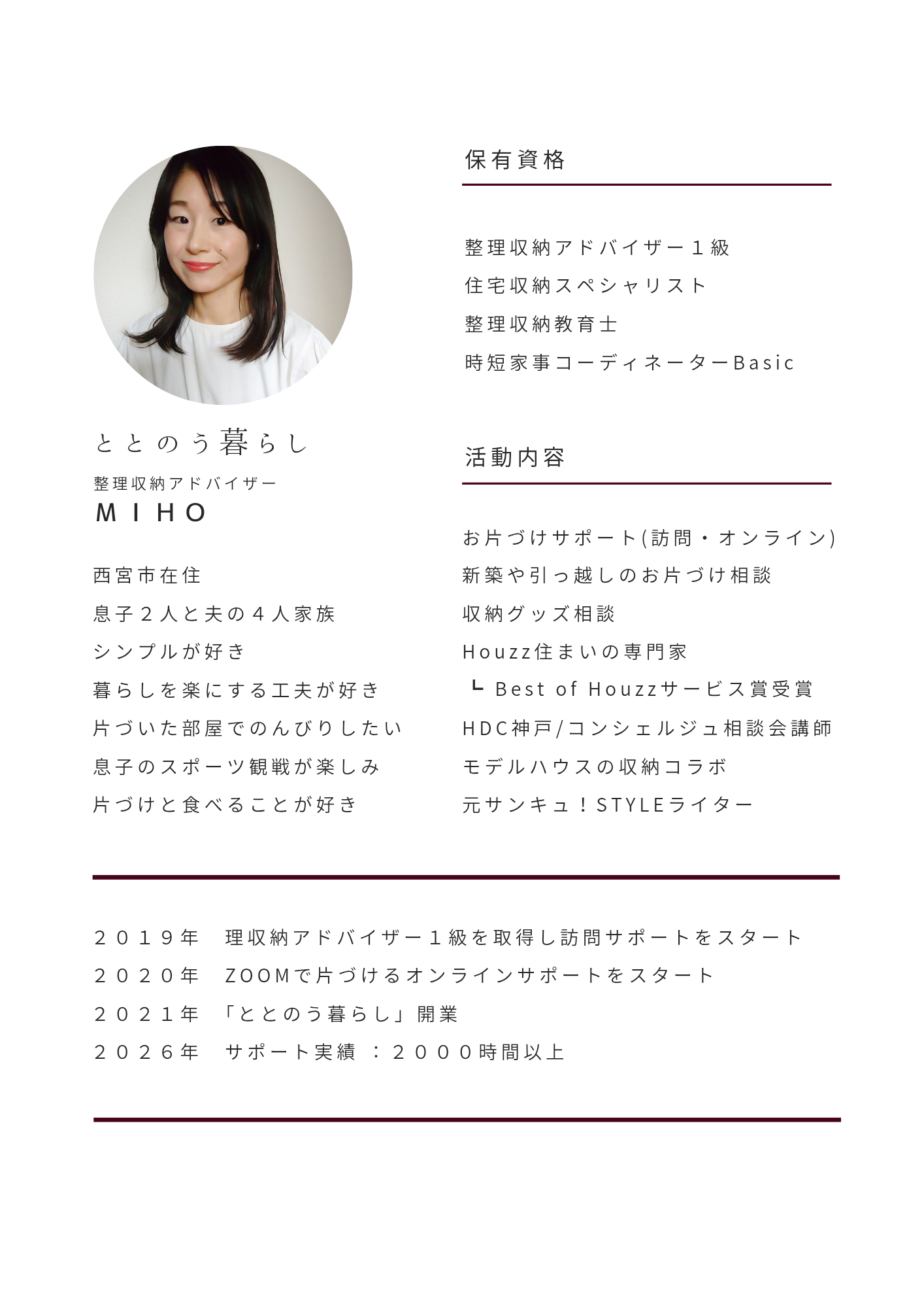 ・サービスを試してみたい ・1か所片づけたい ・2~3か所片づけたい ( 物が少ない方 ) 物の量やスペースの広さ、理想の仕上がりの イメージで作業時間にご家庭差はありますが 1か所4時間前後かかることが多いです |